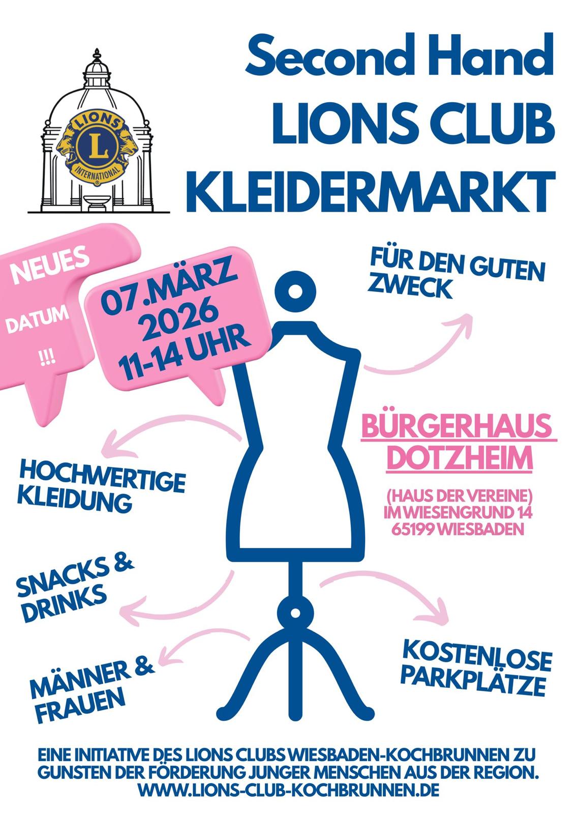 Der Lions Club veranstaltet den Kleidermarkt seit mehr als 25 Jahren. Auf diese Erfolgsgeschichte blickt der Club mit Stolz und freut sich auf viele Besucherinnen und Besucher. Wir unterstützen die Idee der nachhaltigen und ressourcenschonenden Nutzung von Kleidung, die eine hohe Qualität aufweist und lange getragen werden kann. Hierfür stellt der Kleidermarkt eine ideale Basis dar.